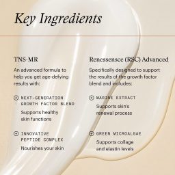- TNS®-MR: This advanced formula acts on multiple levels to help get you to your best results. Next-generation growth factor blend supports healthy skin functions and an innovative peptide complex nourishes your skin.